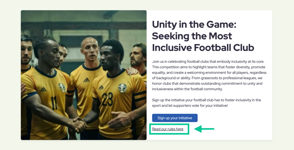 If there’s more information available about your campaign on a separate page, you can add an additional link to the campaign card on your platform to link to this page. This creates clickable text underneath the button of your campaign.