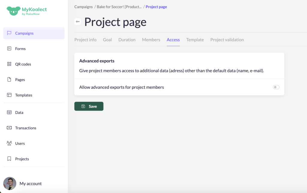 - Toggle on the ‘Allow advanced exports for project members’ option.