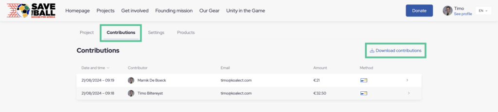 For GDPR reason’s, project owners can only view very limited donor information directly from their project page, which is:
