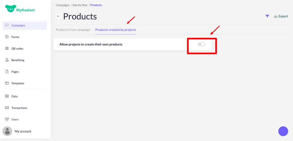 In order to let project owners create products on their project page, you will need to activate it in your campaign.