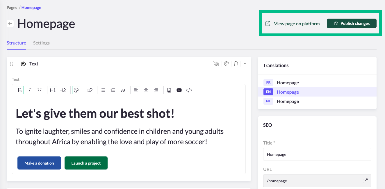 You can personalize and enhance your platform by creating and editing the main page and landing pages.
