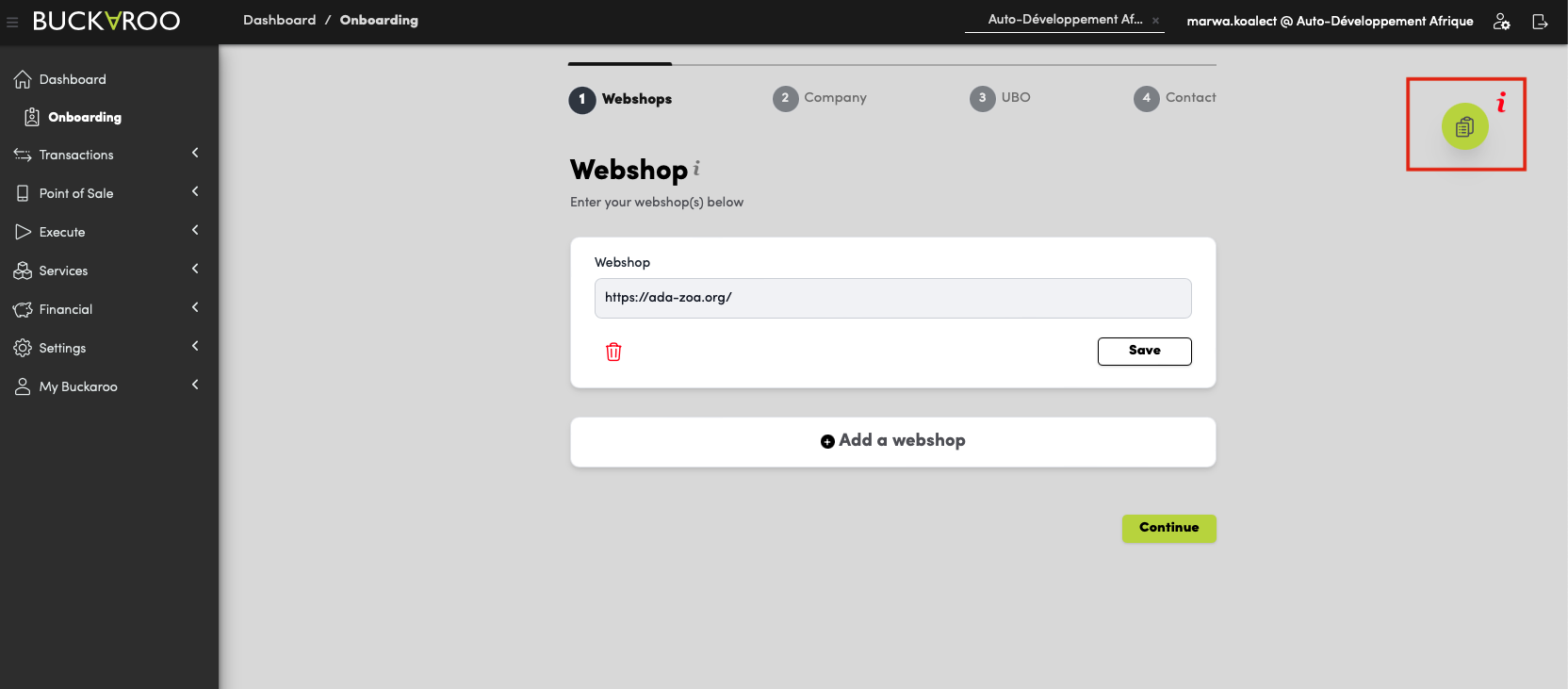 - Ensure the ‘webshop URL’ field contains the URL of your Koalect platform (e.g., https://organisationname.koalect.com). If you don’t know the URL of your Koalect platform, please ask this to your account manager.