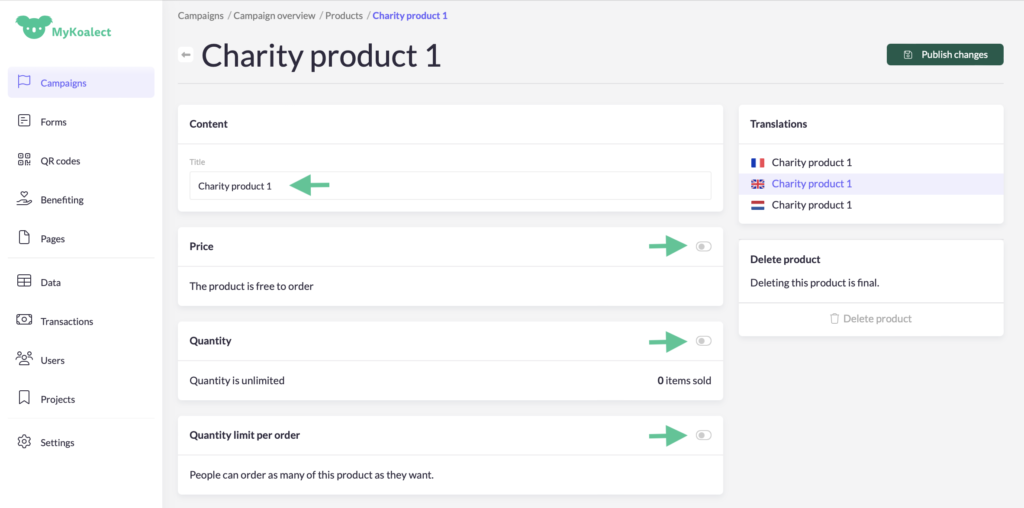 - Translate your product’s details if necessary.