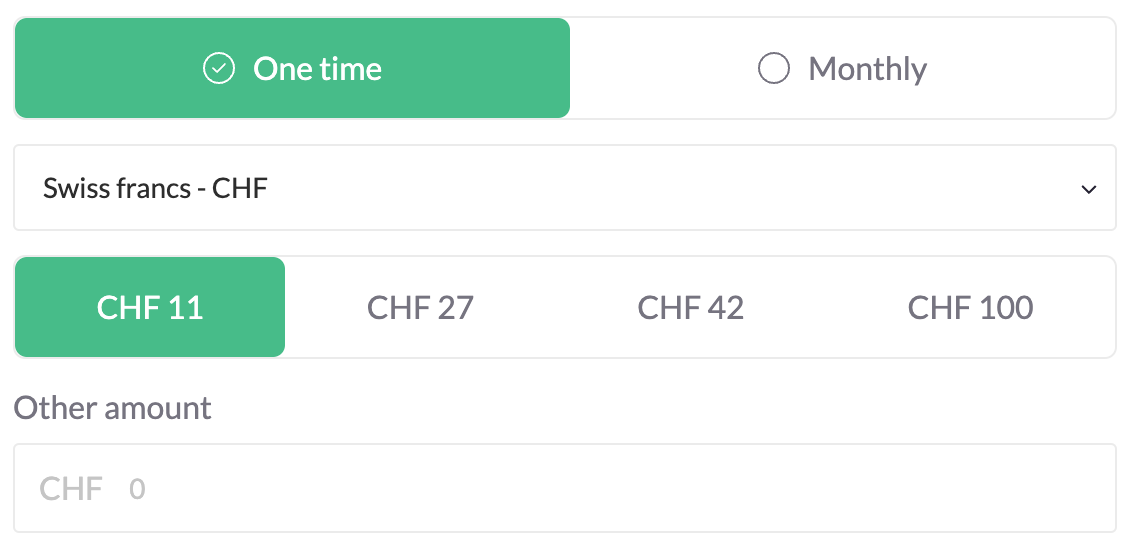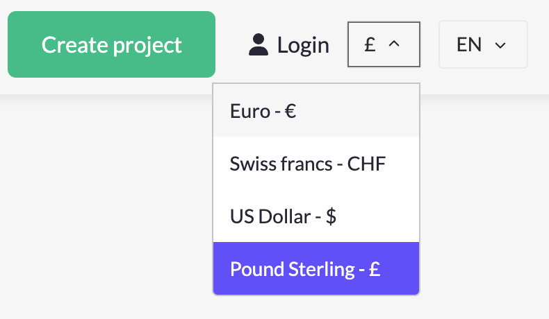 When creating a new project page, project owners can select a ‘base currency’ in which they set their own fundraising goal. This currency is always visible on the project page, however other users can switch to their preferred currency for a personalised user-experience.