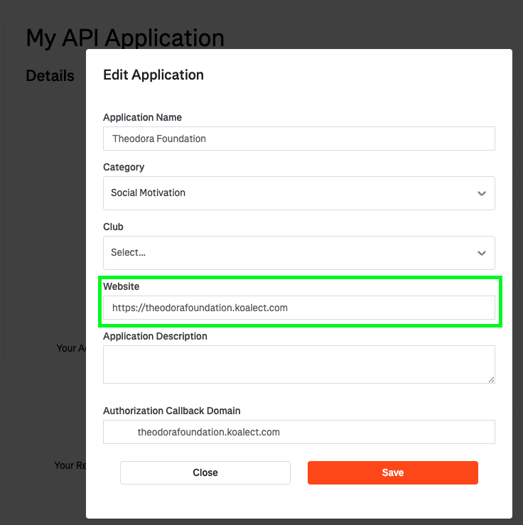 Beware: If you change your Koalect platform’s domain URL, be sure to update both the website and the authorization callback domain in your Strava API settings. Failing to do this may cause the integration to malfunction.