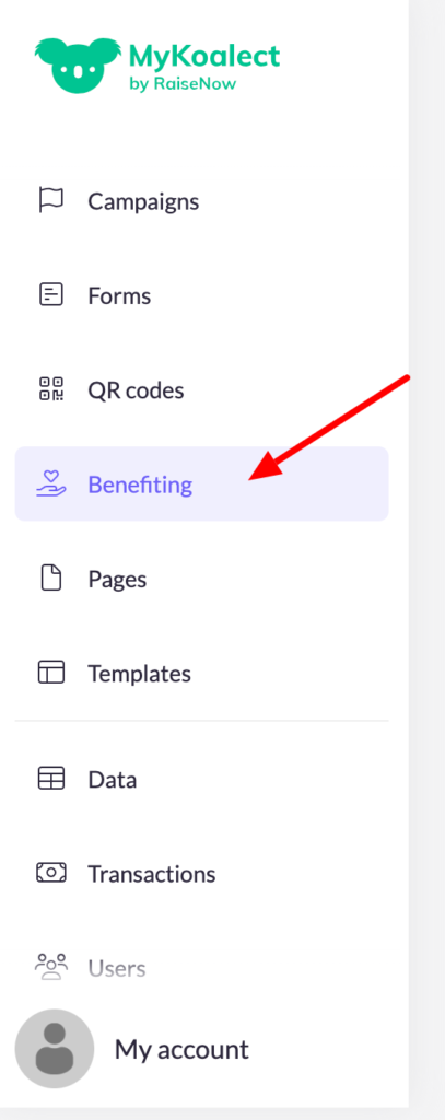 To activate the ‘Benefiting’ feature for your platform, please contact your Customer Success Manager or email support@koalect.com. Once activated, you will see an additional tab in your back-office labeled ‘Benefiting’: Discover further how to work with Benefiting: What is benefiting? How to add new beneficiaries? How to integrate beneficiaries in my campaign?