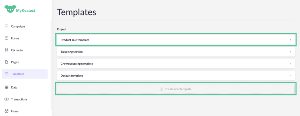 To manage templates, go to ‘Templates’ in Mykoalect. Here you can edit a template by clicking on it or create a new one by pressing ‘Create a new template’.