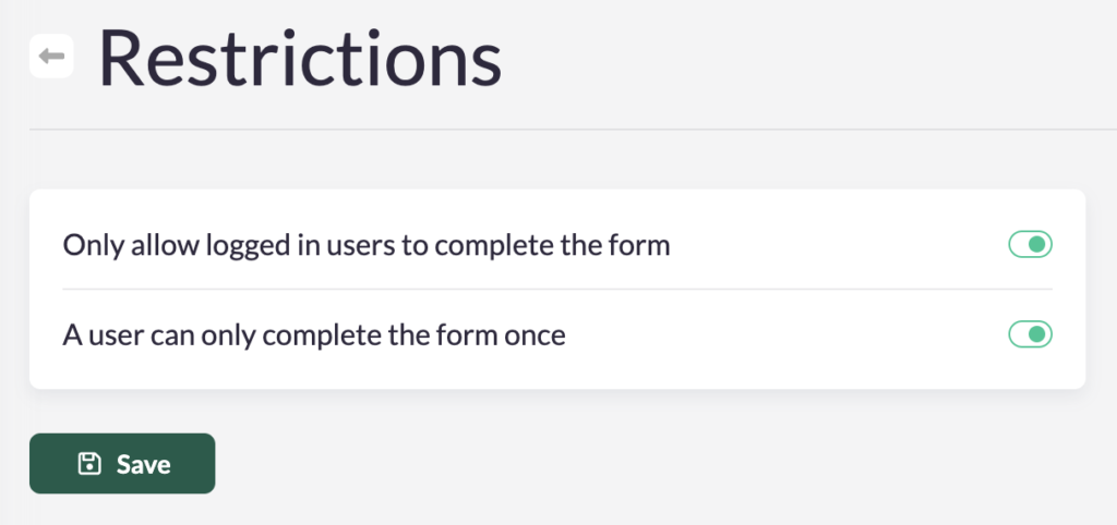 There are three options when ‘restricting’ your form: