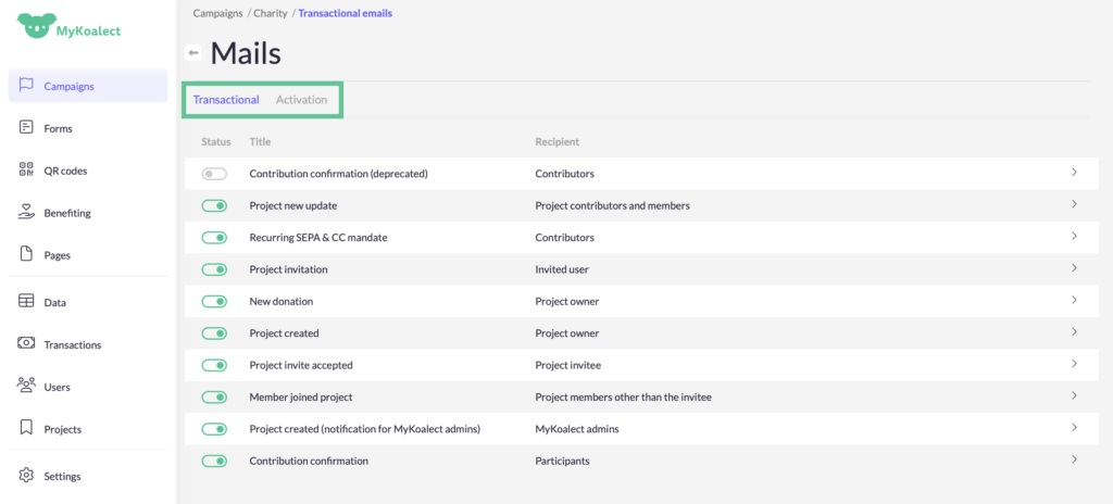 You can enable or disable these mails based on your preference, which include pre-set default messages that can be personalised to give your campaign a personal touch to make it more engaging.