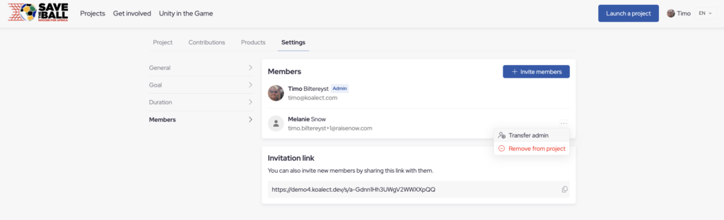 Projects evolve. Team members leave, roles change, new people take over. With just a few clicks, you can transfer ownership of a project page directly in the project settings or in MyKoalect.