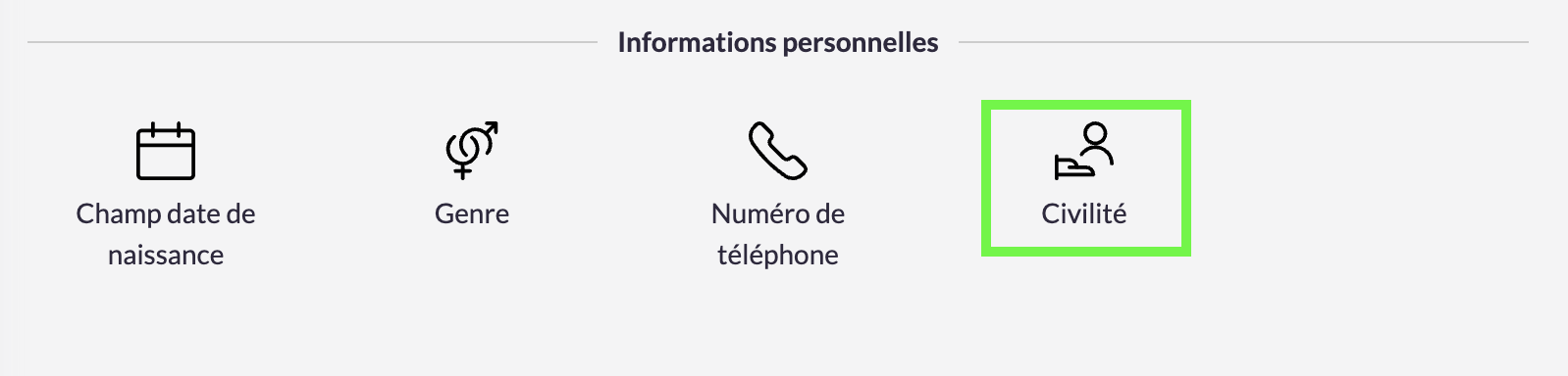 - Cliquez sur Ajouter un élément, puis choisissez Civilité.