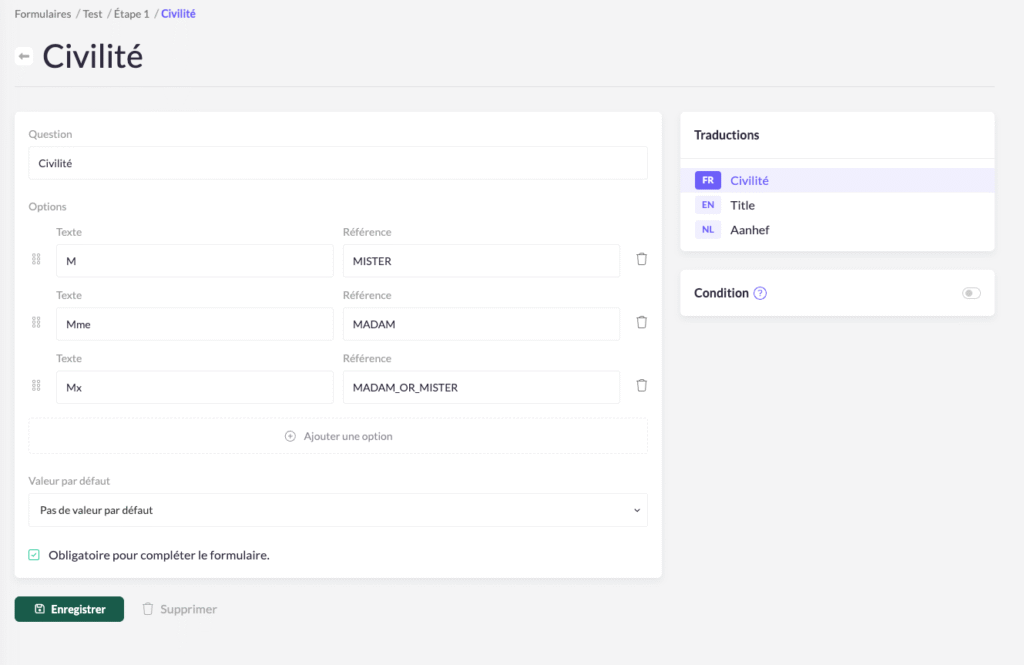 Vous n’avez rien à faire ! Koalect a automatiquement ajouté l’élément “Civilité” à vos formulaires SCAN, y compris à tous les codes QR générés. Aucune modification de votre part n’est requise.