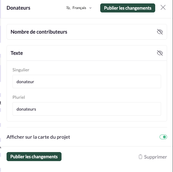• Afficher ou masquer des éléments sur la page du projet et dans les paramètres
