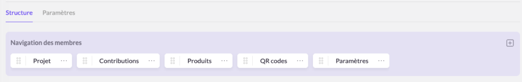 Modifiez l’ordre et l’intitulé des liens de navigation destinés aux membres du projet :
