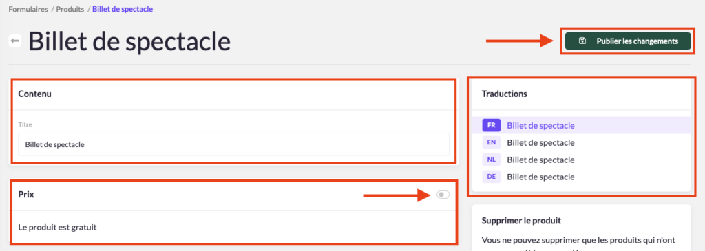 - Traduisez les informations relatives à votre produit dans chaque langue disponible.