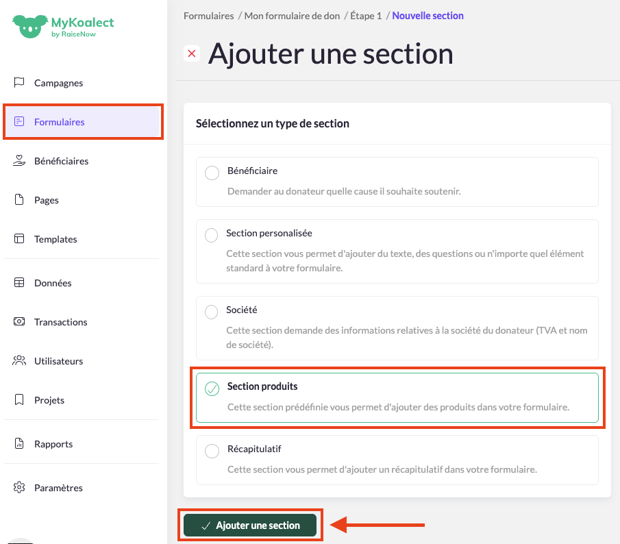 1. Cliquez sur « Formulaires » puis sur le formulaire auquel vous souhaitez ajouter des produits.