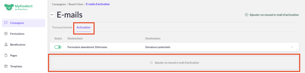 3. Cliquez sur « Ajouter un nouvel e-mail d’activation ».
